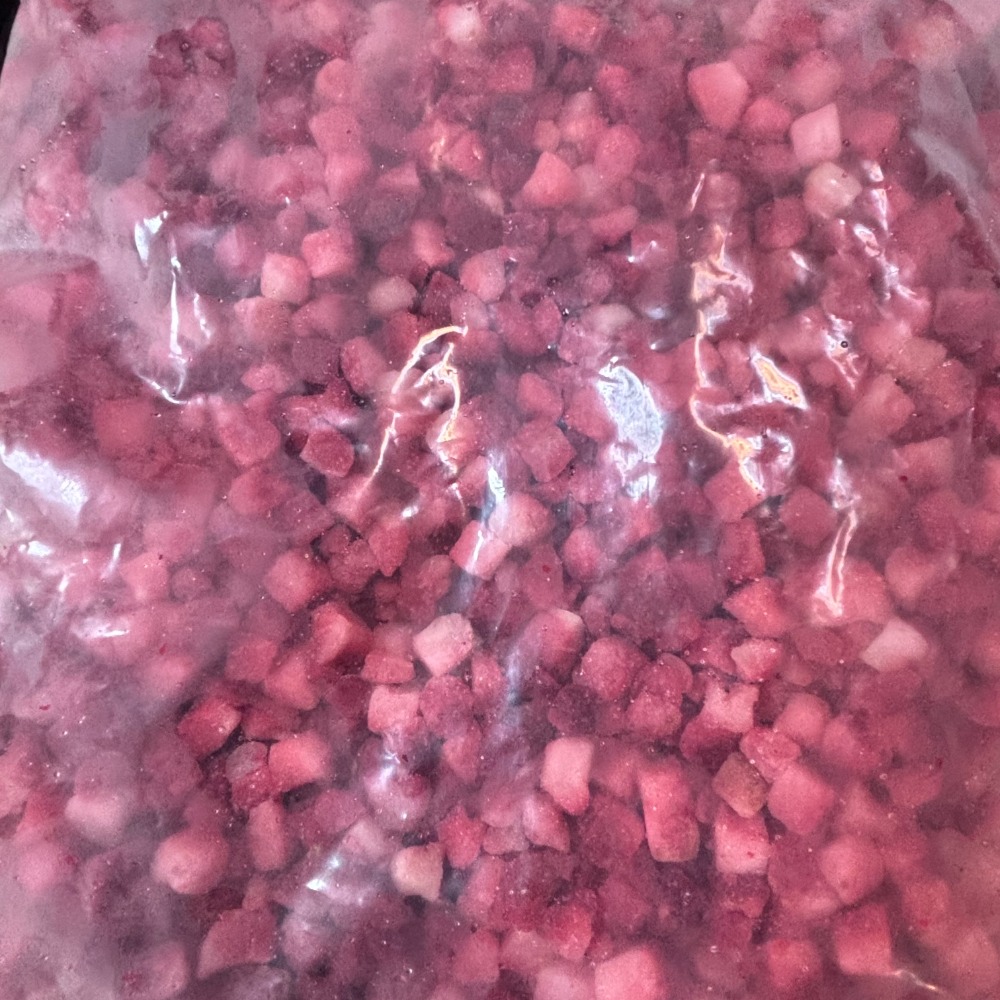 冷凍包裝設計不僅確保草莓丁在運輸和存放過程中不易腐壞,延長了產品的新鮮度,而且方便您靈活使用,無論是家庭料理還是餐飲業者的烘焙需求,皆能輕鬆增添自然甜美風味。
